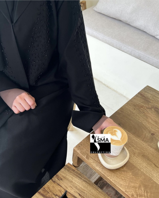 عباية بشغل خرز أنيق باللون الأسود